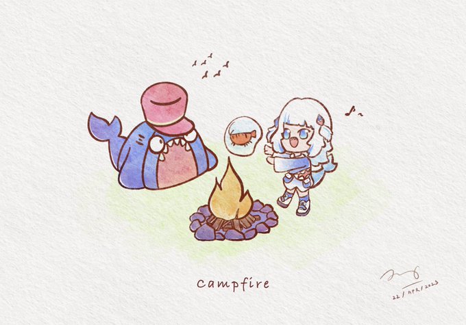 3 9 Gura’s Campfire . . Tags: #gawrt #gawrgura #gawxart #hololiveen #hololive #art #chibiart #procreate #watercolor 23/04/22 17:02