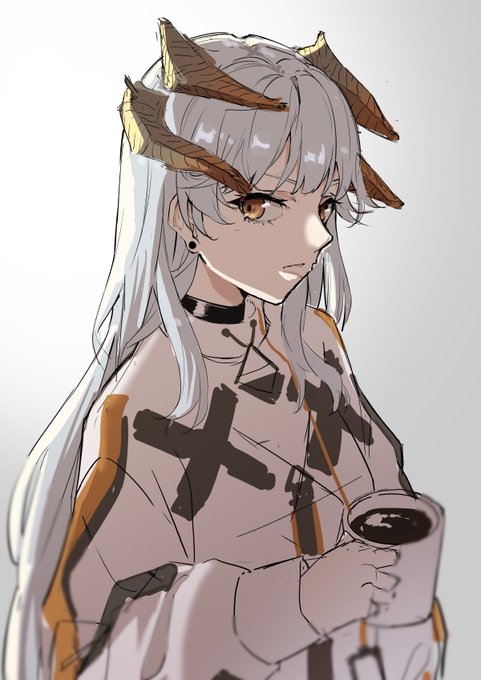 ライン生命組はコーヒー似合いそう 1h オーバーです #アークナイツ版深夜の真剣お絵かき60分一本勝負