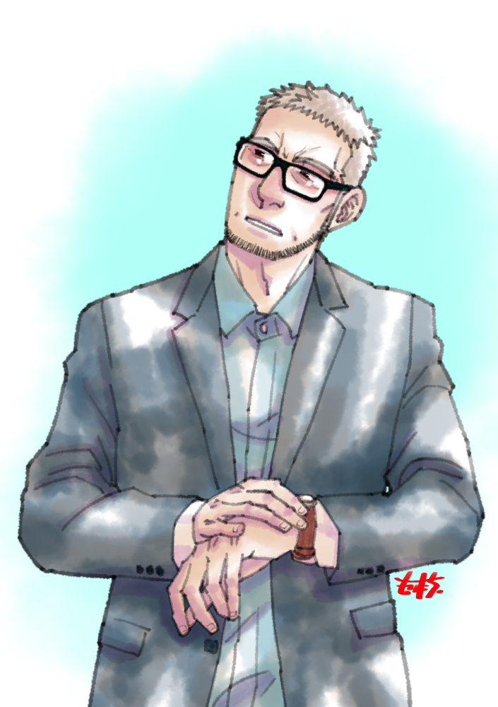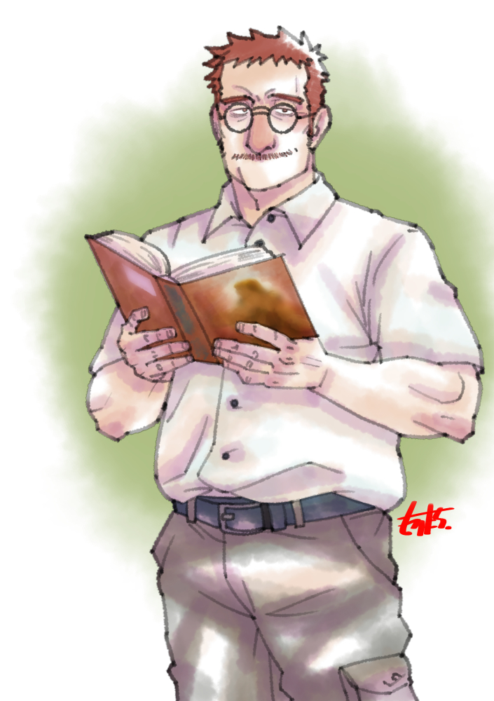 #ヒゲ版深夜の真剣お絵描き60分一本勝負 お題:国語教師 国語教師感とはw ・・・前も同じこと書いたなw なんかこう、勝手なイメージとしては本好きで眼鏡してて根暗な感じでインドアぽいと言うかなんというかw ・・・って感じのイメージな絵w