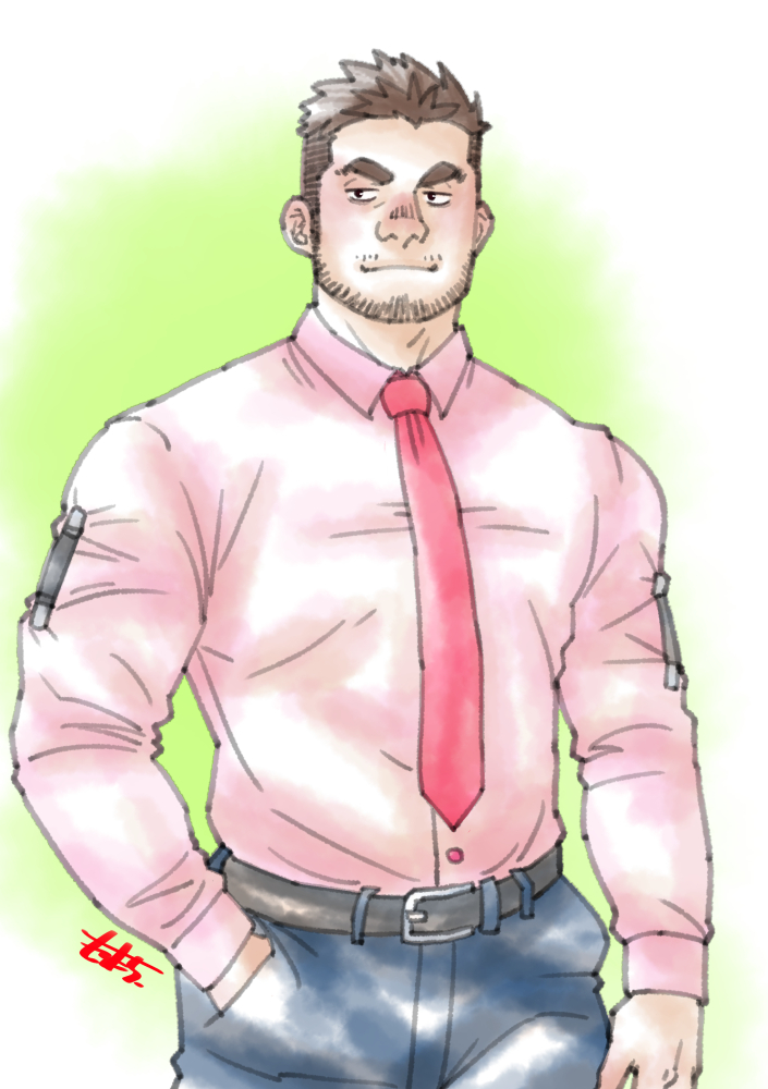 #ヒゲ版深夜の真剣お絵描き60分一本勝負 お題:体育教師 ジャージでガタイ良くて独身で小汚いイメージか?w あ、あと個人的には便所サンダルw でもこういう先生とは仲良かったなぁ・・・(遠い目)
