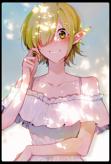 #Skeb #Commission 納品しました!夏服お披露目して照れてる感じ~~…をイメージして描きました!照れ顔可愛い