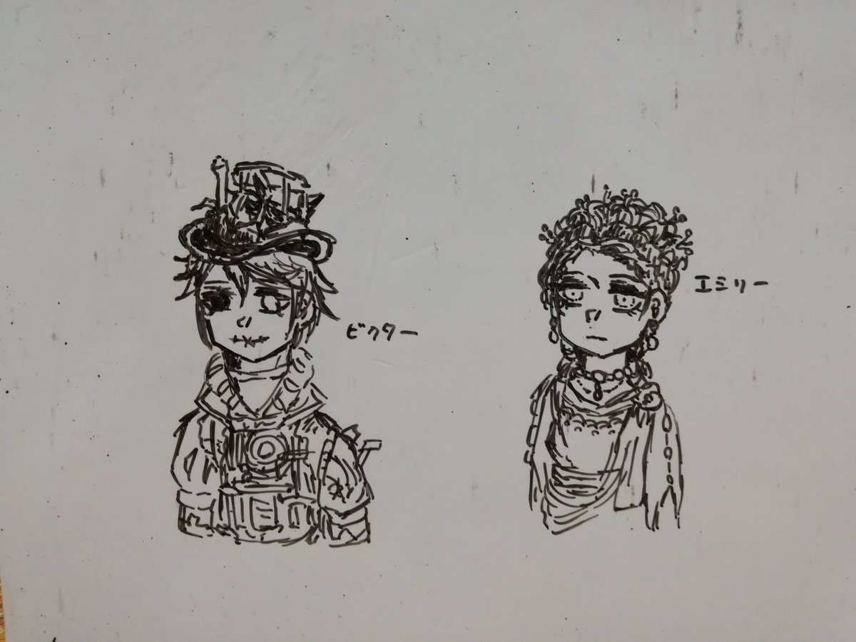 0 1 #第五人格イラスト ホワイトボードに3周年ビクターと推理のエミリーを描いてみた! 21/07/14 01:21