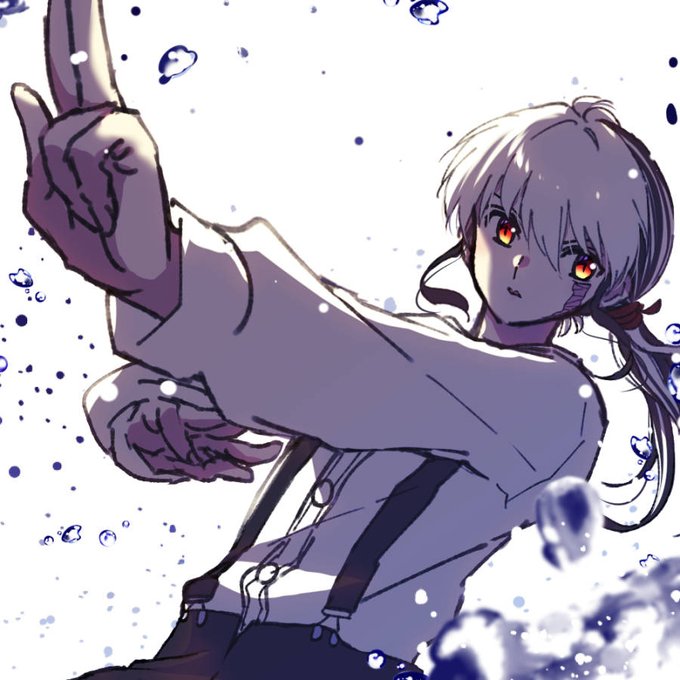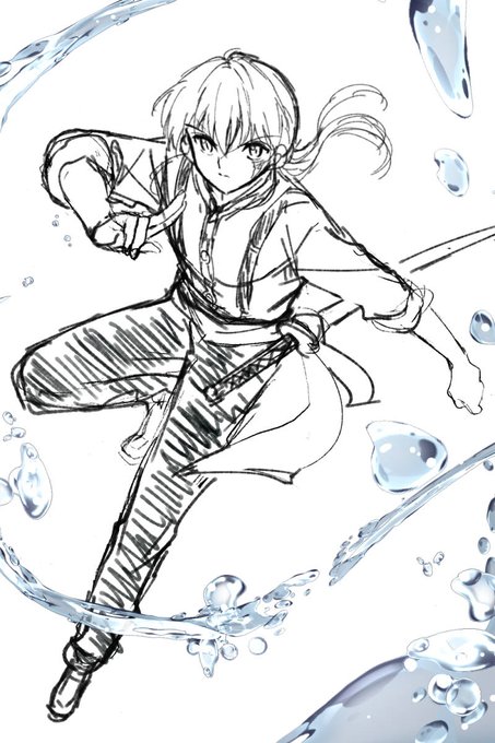 今日ちまちま描いてた落書き摩緒と百火 気が向いたらちゃんと仕上げる 摩緒は属性不明だけど水使うの多いからどうしても水背景になると言うか…