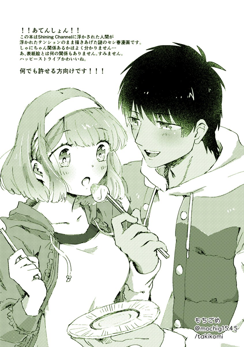 頒布物①「せしはるちゃんねる!」 超プリコンに持っていく新刊のサンプルです~タイトル通りとてもゆるいShining Channelに浮かれた謎のらくがき本です。。本当に何でも許せる方向け!です! サンプル(pixiv):pixiv.net/artworks/10764…