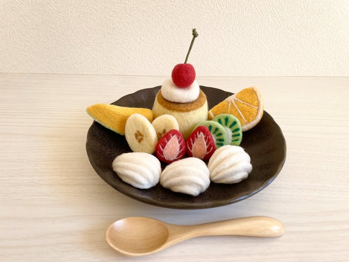 ちょっと早いですがプリン・ア・ラ・モード販売開始しました! creemaで本日ポイント5倍キャンペーンやってるので良かったら覗いてみてください🙇♀️ creema.jp/creator/737828… #レトロ #羊毛フェルト