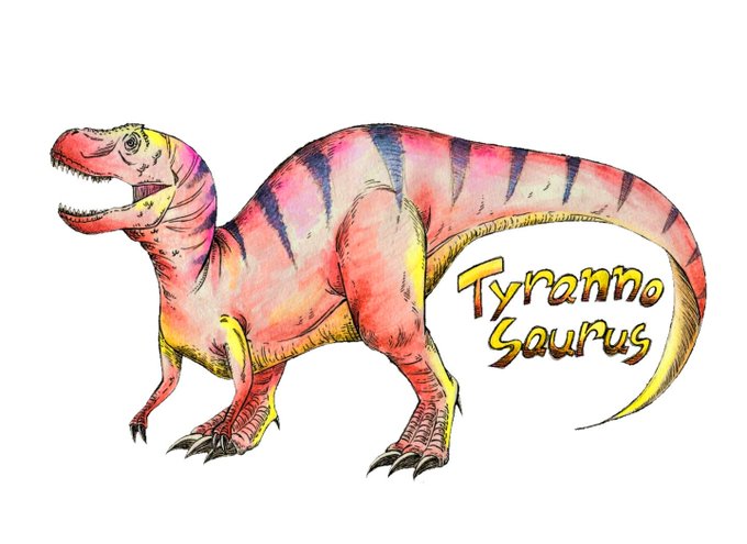 見返りティラノ図。 初・水彩毛筆で色塗りしてみました。私好みの発色の良さ(*´ェ`*) #恐竜 #ティラノサウルス #水彩 #水彩画 #絵描きさんと繋がりたい #絵描きの輪 #dinosaur #tyrannosaurus #watercolor