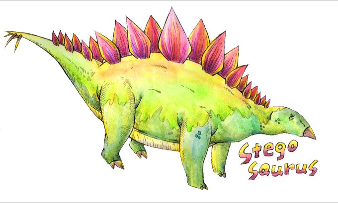 ステゴサウルス。 毎回色に悩みつつ、最終的には無難に緑に落ち着いてしまう恐竜。図鑑のイメージも強いしねぇ。。何気に背中の骨板塗るのが一番楽しかったです #恐竜 #ステゴサウルス #水彩 #水彩画 #絵描きさんと繋がりたい #dinosaur #stegosaurus #watercolor