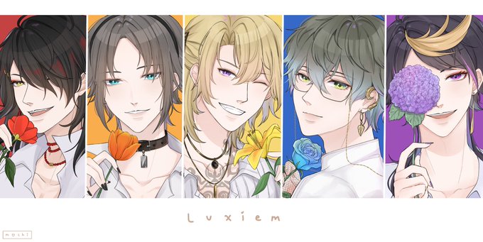 Luxiem flower boys~ ♥️🧡💛💙💜 (Individuals posted below ⬇️) #Akurylic #MystArt #drawluca #Ikenography #YaminoArt