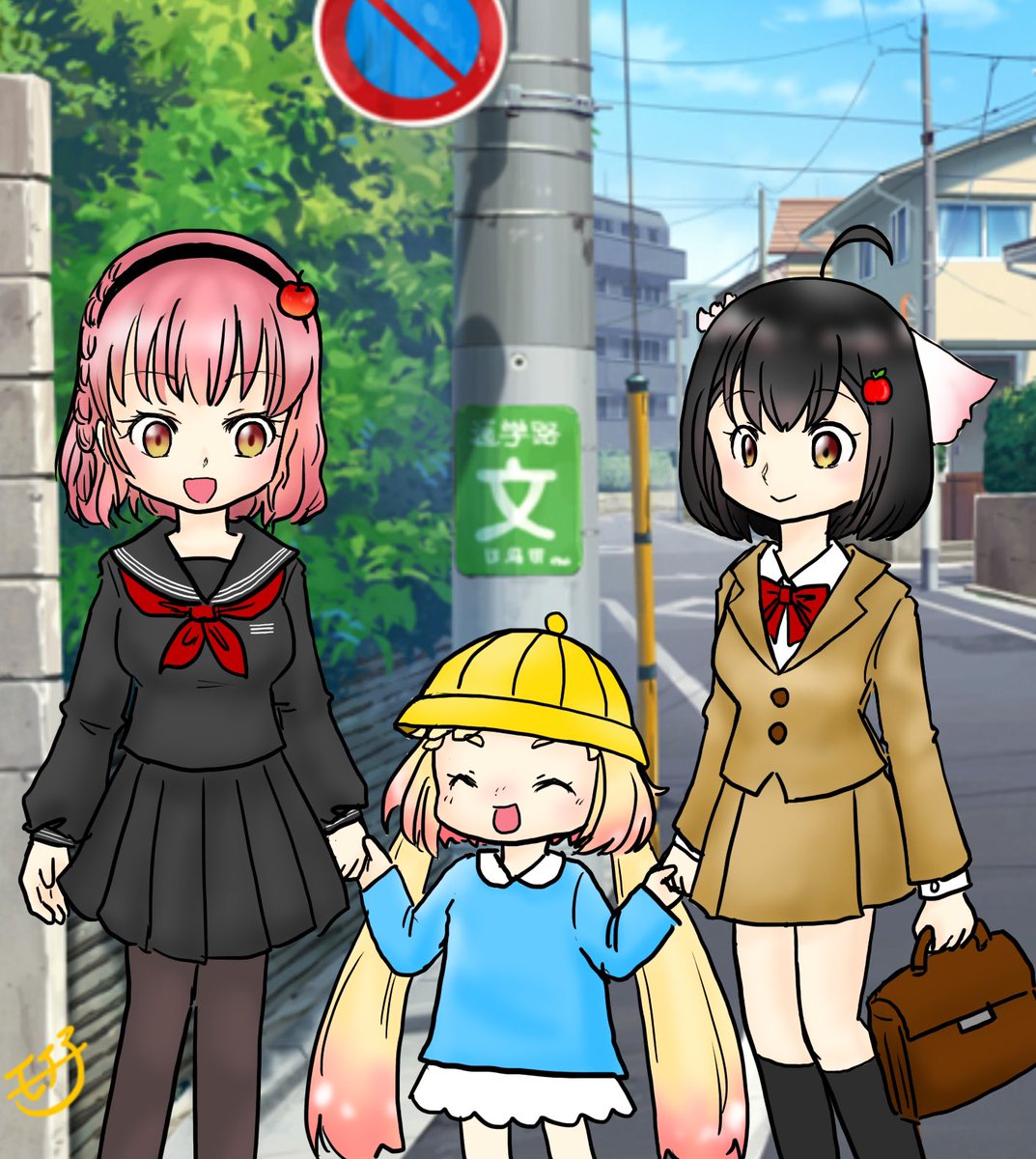 15 59 津軽三人娘の津軽りんこちゃん、津軽ねぷこちゃん、訛り幼女コウちゃんでコラボイラスト描いてみたw みんなで仲良く通学🏫 #アートりんこ #津軽過激派 #訛り幼女 20/02/24 22:32