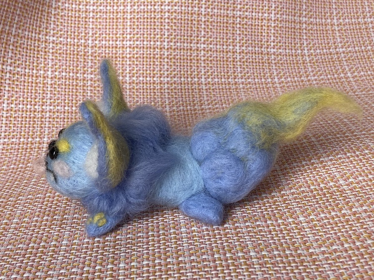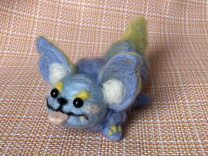 ししごんだごーん🎵 …あ、首輪(?)作り忘れてたw でも今日は力尽きたから、後日頑張れたら作る… (とか言いつつ首輪は多分作らないw) #おきなわ部 #ししごん #空飛ぶ #羊毛フェルト