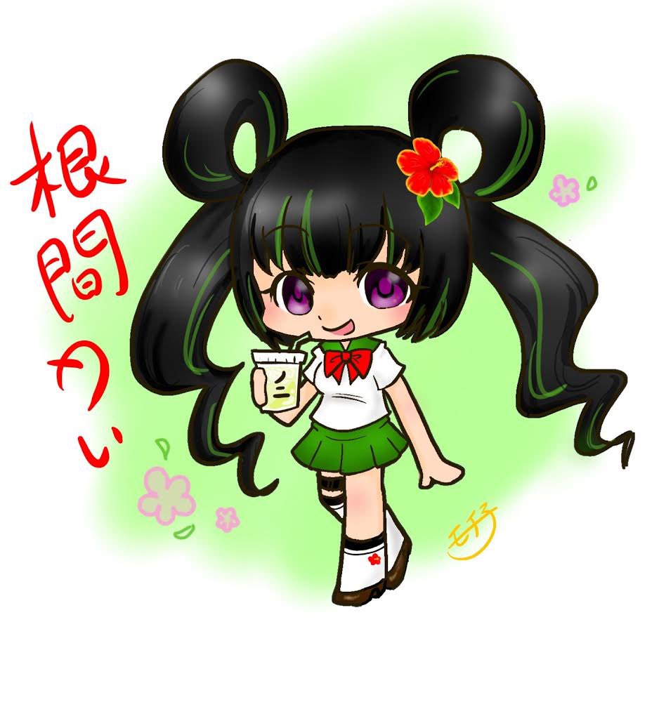 「いいねの数だけVTuberを描く」で31人描きます。 1人目 根間ういちゃん タピオカじゃなくてノニ飲むのがおきなわ部の流行り…?なJKういちゃんw #ういアート #おきなわ部