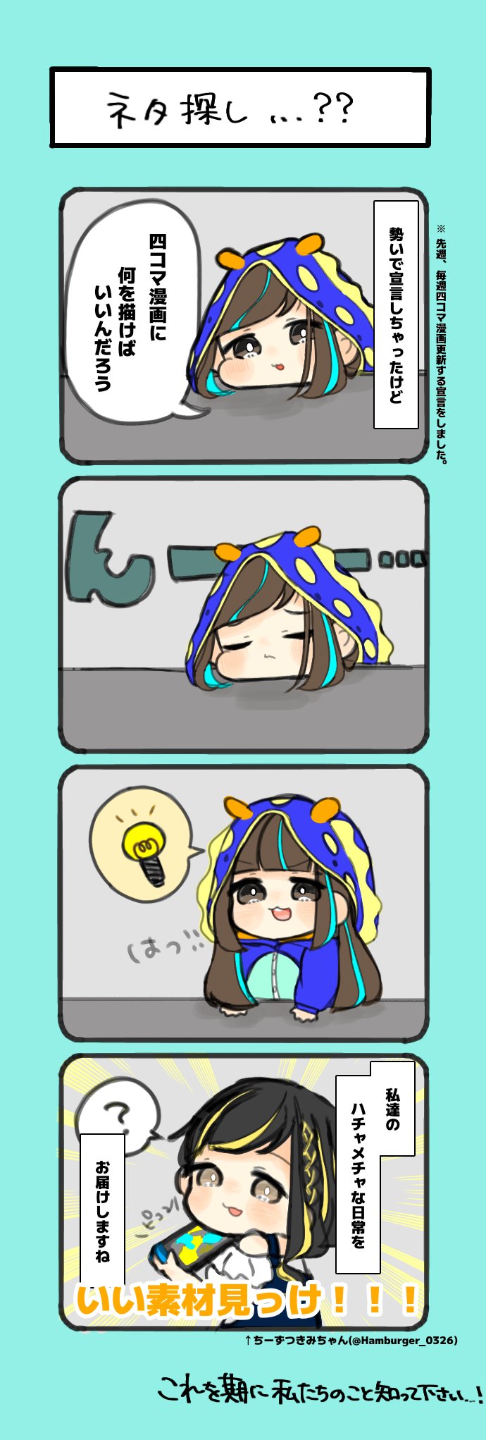 【🐟今週の四コマ漫画🐟】 「ネタ探し...?」 #イラスト練習中 #日常漫画 #イラスト好きな人とつながりたい #四コマ漫画 #配信者さんと繋がりたい #活動者さんと繋がりたい #絵柄が好みって人がいたらいいなぁ #初リプ・初絡み大歓迎
