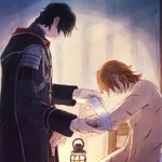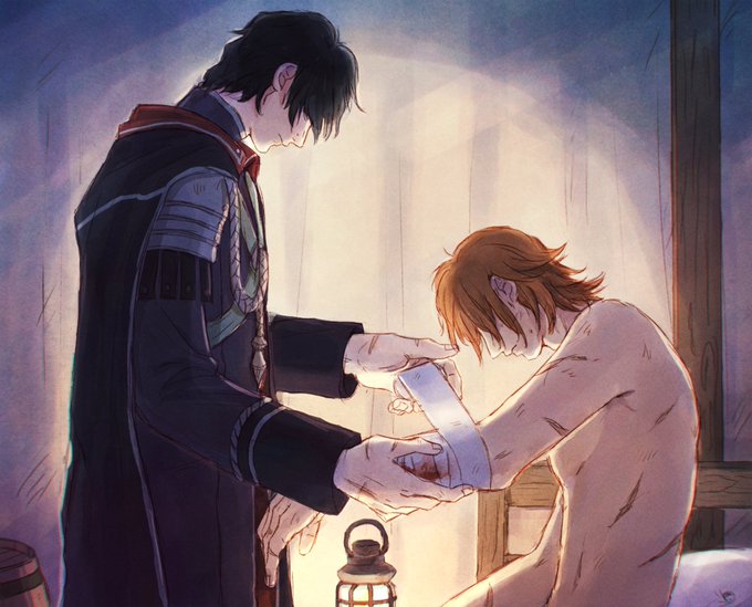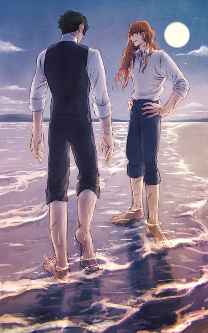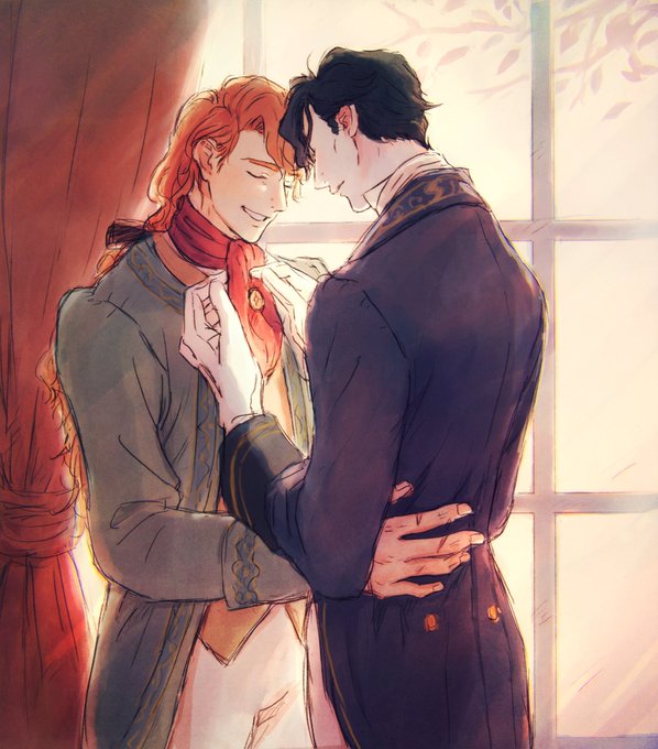 めんたいさんの小説「再録集まなざし」の元絵です🤲月明かりの中、窓辺で密談椅子に座った二人が穏やかに目線を合わせて手を重ねてるイメージ…とめんたいさんから素敵な案を頂いて描きました✍️再録本楽しみです🧡🖤 twitter.com/mentai_nysun/s…