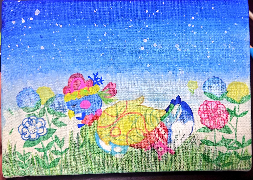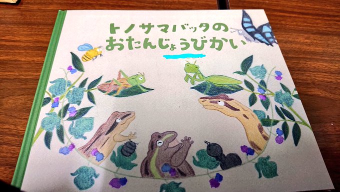 0 6 専門学生の時に制作した、絵本です(*^^*)たくさんの生き物たちがトノサマバッタのためにお誕生日会を開くお話を描きました😊 使用した画材は、アクリルガッシュと色鉛筆です。 #イラスト #絵本 #アクリルガッシュ #色鉛筆 22/04/30 01:06