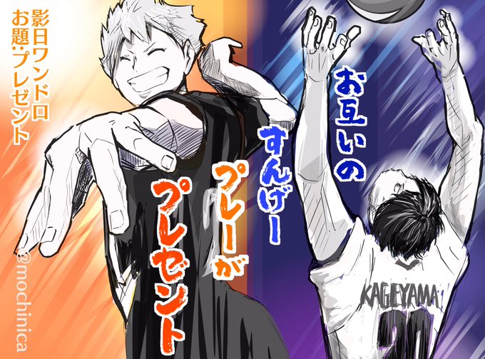 32 131 お題:始まる 試合開始!大声張り合う👑🍊 #影日ワンドロ @kagehina_d_w 23/07/29 23:40