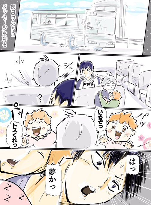 3 24 お題:メッセージを送る トビオが大人になって見る夢🌟 中学トビオを励ます赤ちゃんショヨ🏐✨ ⒈5ドロです #影日ワンドロ @kagehina_d_w 23/01/28 23:49
