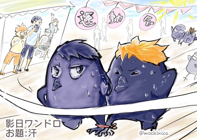 8 25 お題:汗 カラス運動会二人三脚レース ゴーーール🐥🐥 #影日ワンドロ @kagehina_d_w 23/05/06 23:15