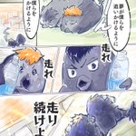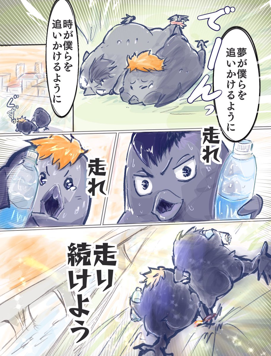 お題:汗 カラス運動会二人三脚レース ゴーーール🐥🐥 #影日ワンドロ @kagehina_d_w