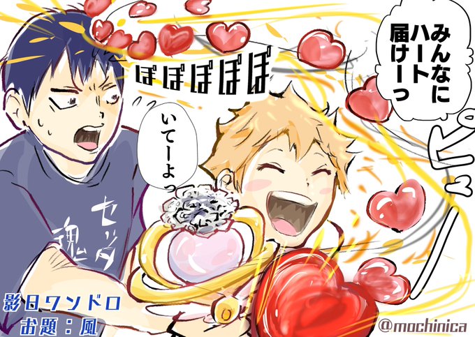 16 96 お題:風 セラiムンのロッドで視聴者に 向けたハートが風下にいるトビオに物理攻撃されてるとこ 💕💕 #影日ワンドロ @kagehina_d_w 23/06/10 23:24