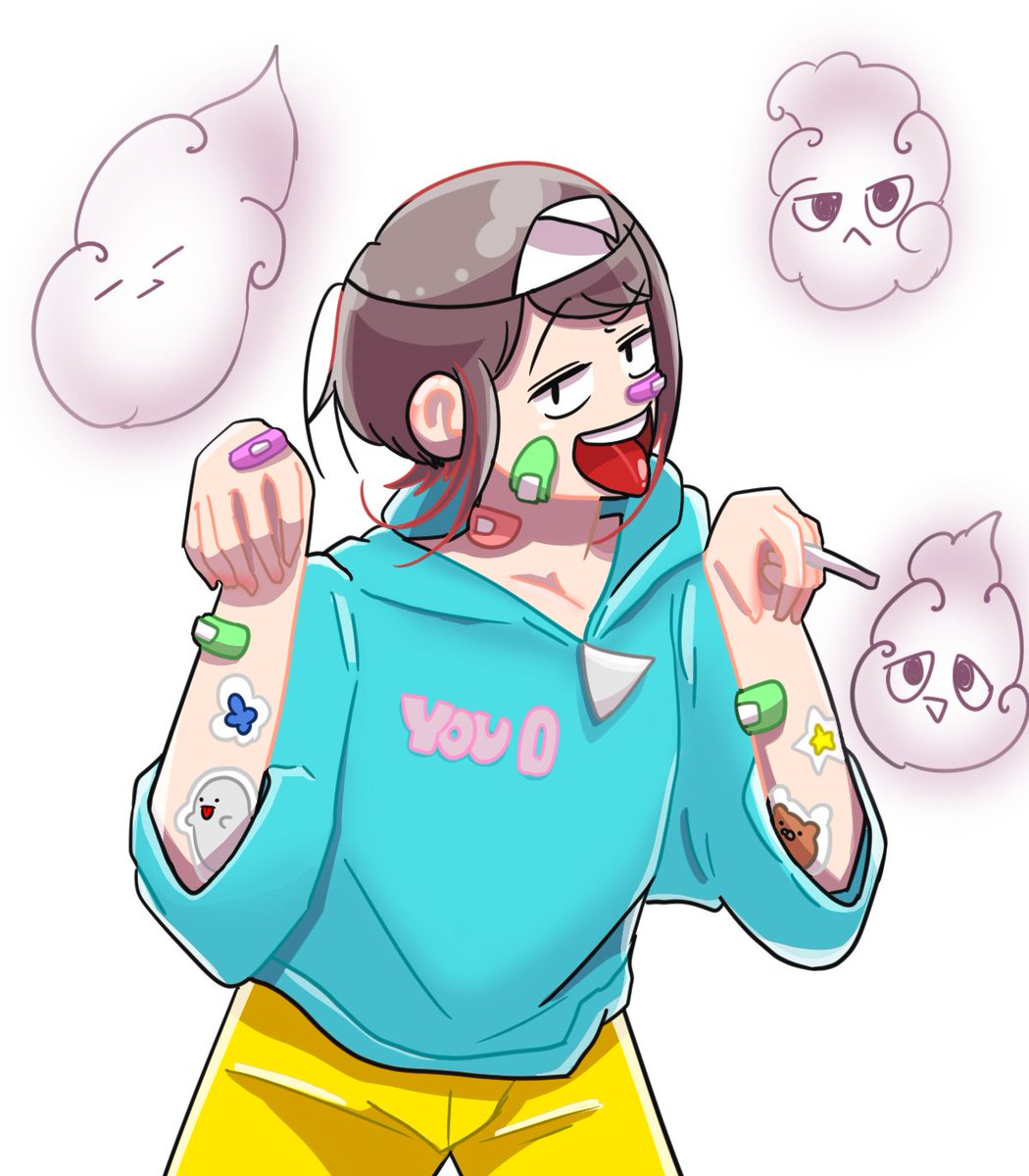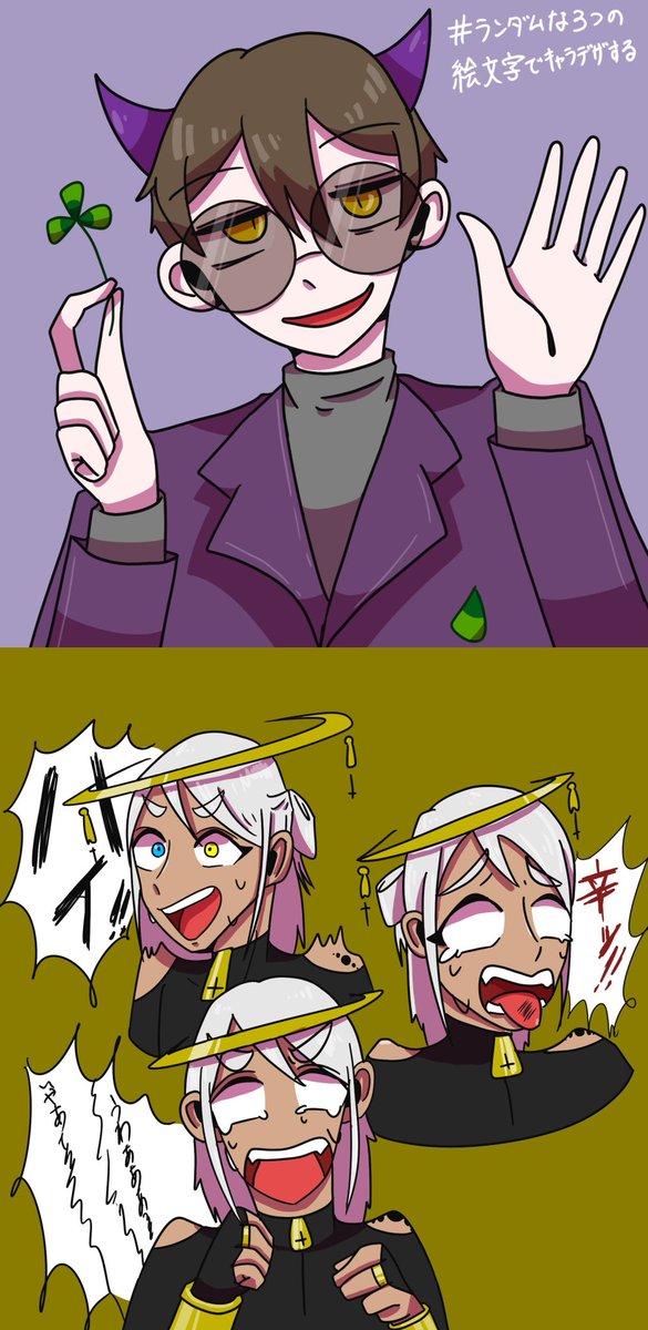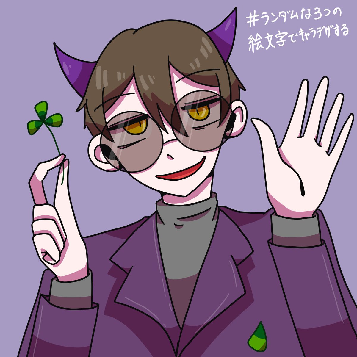 #イラスト #ランダムな3つの絵文字でキャラデザする ☘😎👿