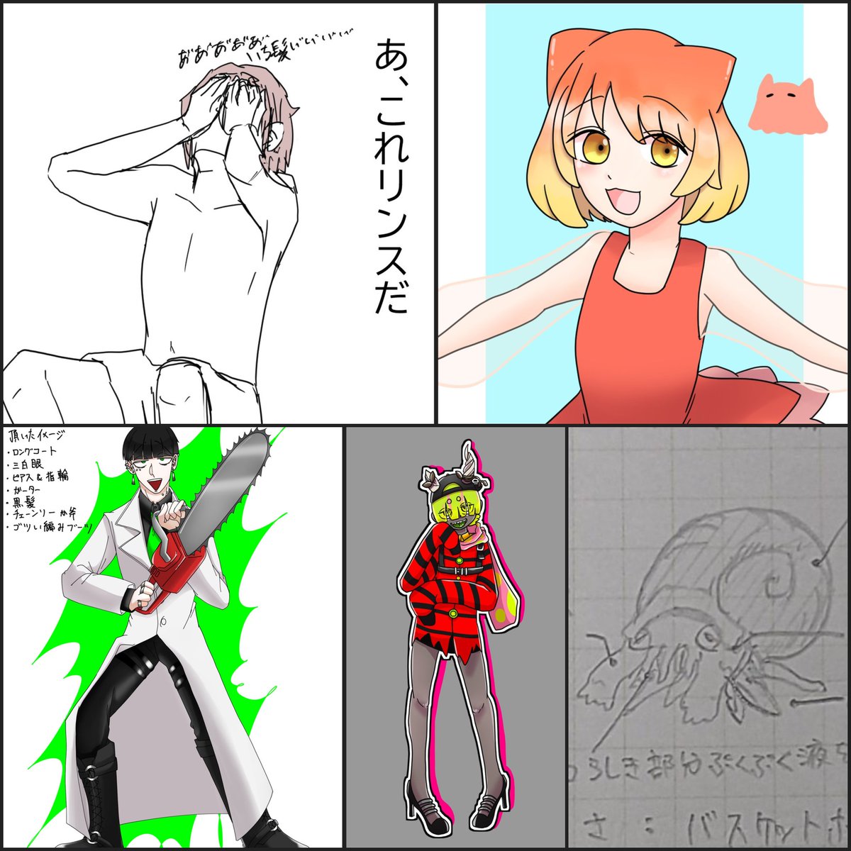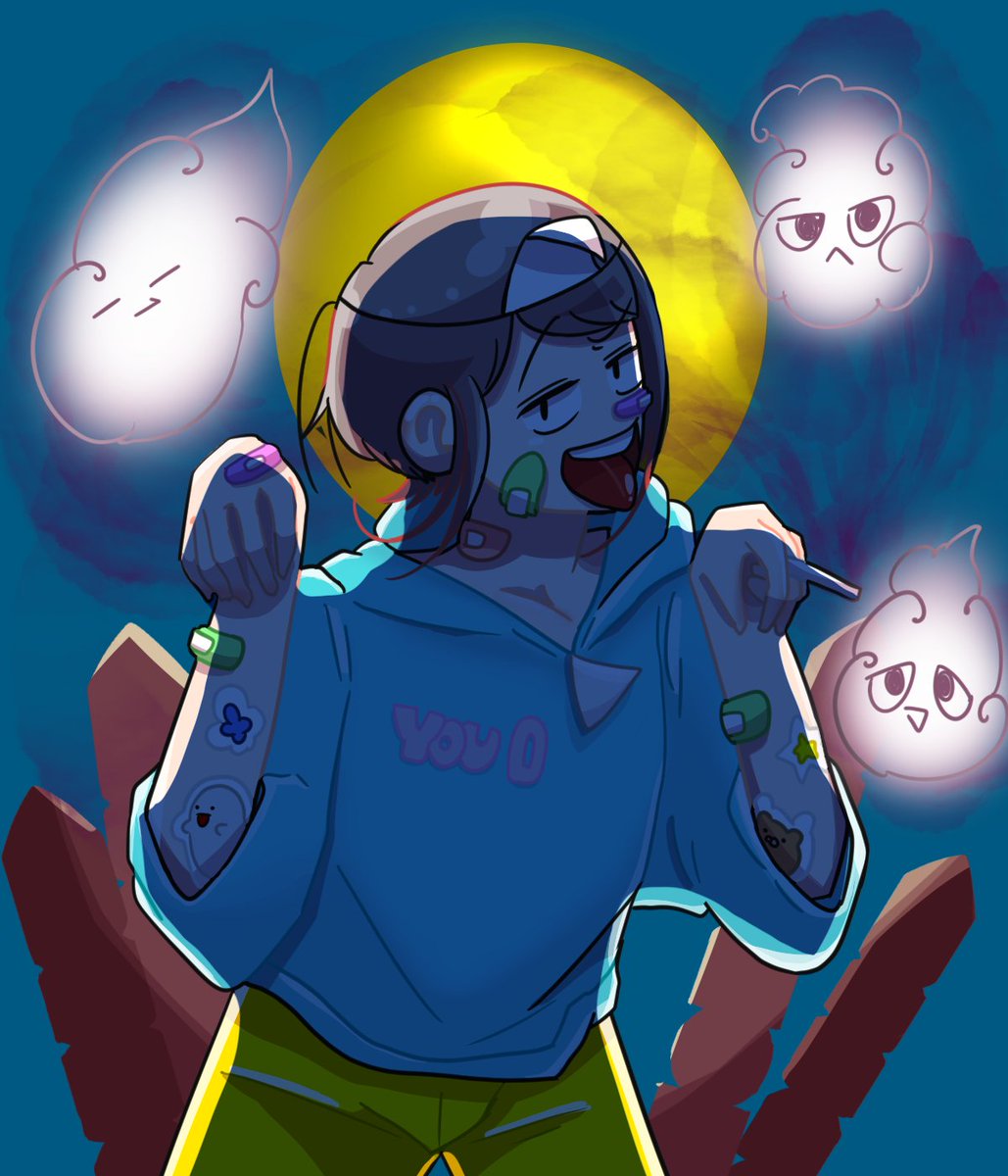 1 6 #イラスト #ランダムな3つの絵文字でキャラデザする ☘😎👿 22/06/01 19:05