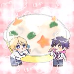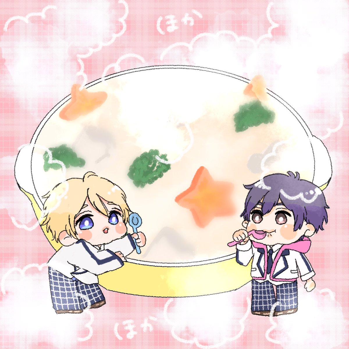 チャイナな雰囲気が好きでこういう衣装を描きました! かなたくんの頭にはギャーザ……ギョウザ🥟が乗っかってます🤣 飛鳥くんには是非色んな髪型に挑戦して欲しくておさげにしました! 2枚目と3枚目にちょっとだけ詳しく説明入れてます😌 #あすかなステージ衣装 #あすかなアート
