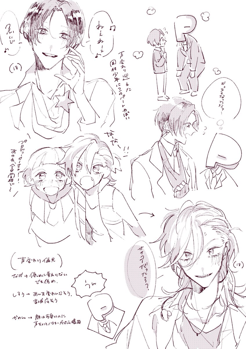 女性グループの歌を男性に歌わせてるのと見づらい絵とクソ長い解説プラス汚い字だけどこの曲は最高なので布教させてください、あときょうじの髪色がなんだか違うのはごめんなさい