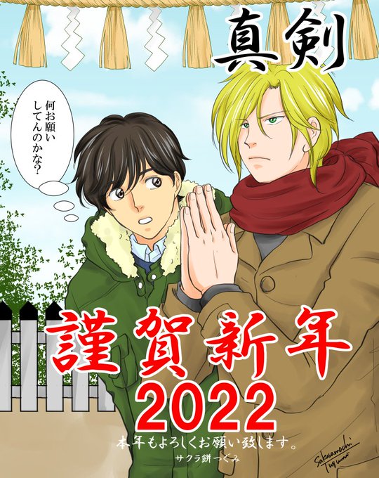 12 111 あけましておめでとうございます🌄 過去絵の年号変えただけですが😅 今年もどうぞよろしくお願い致します🎍 とりあえず、バナステ後編楽しみです☺️ 22/01/01 00:00