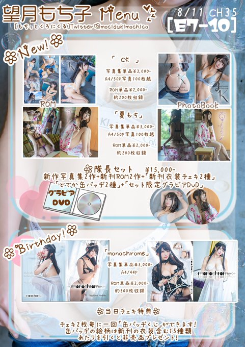20 119 本日のコスホリおしながきです👘🍧 スペースは4F/E7~10です🫶🏼💗 写真集がめちゃくちゃいい出来になってます〜!! 撮影時間は後でツリーにつなげますー! よろしくお願いいたします🍡⸜( ॑꒳ ॑ 🍡⸜) 23/08/11 09:49