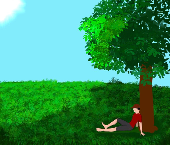毎日投稿17日目 「木陰で眠る少年」 #毎日投稿 #一日一絵 #毎日一絵 #イラスト #イラスト練習 #絵 #絵描きさんと繋がりたい #illustration #art #digitalart #青空