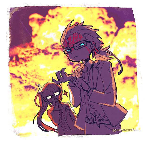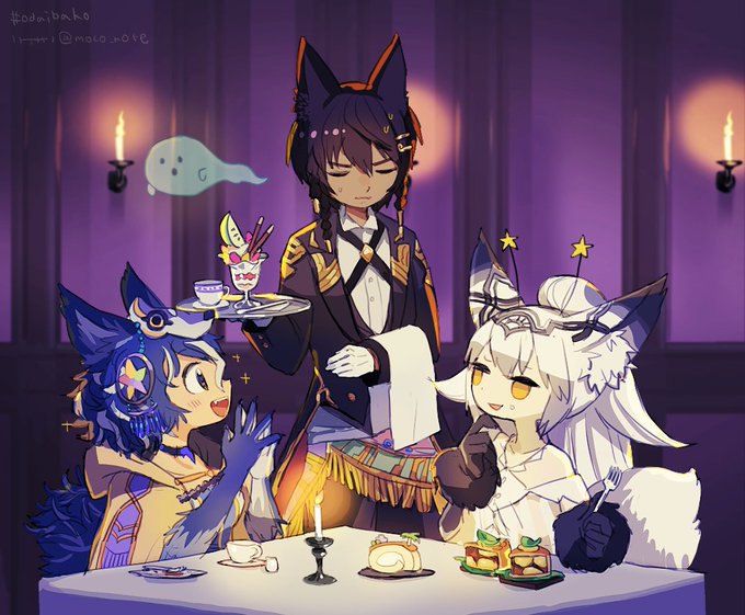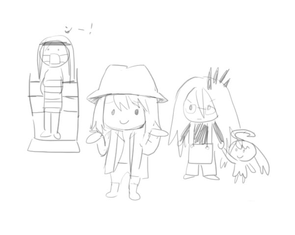 ハロウィンじゃなくなってしまって申し訳ないですが遊戯ギザザヤと愉快なケ者たちです。お題ありがとうございました! #odaibako_moco_note odaibako.net/detail/request…