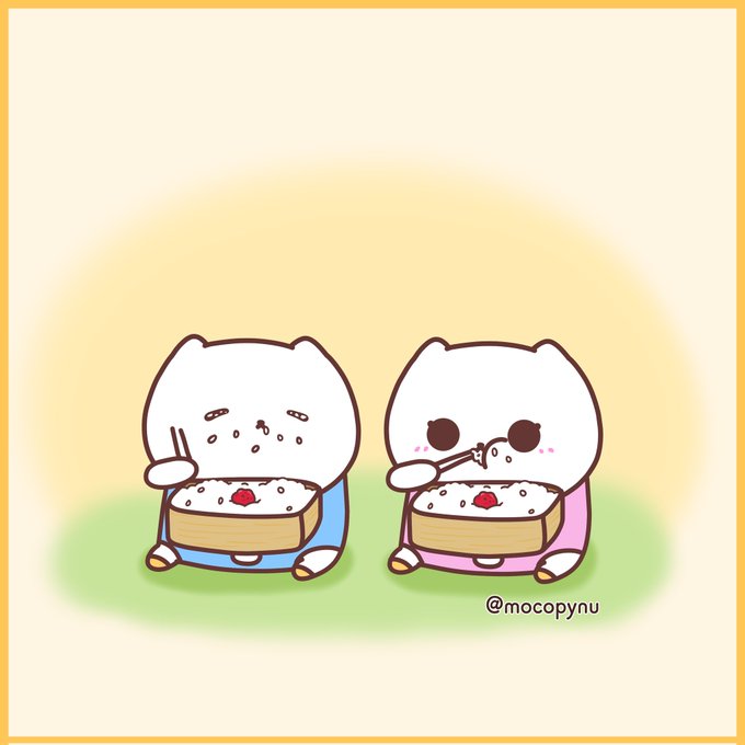 一緒に食べると美味しいね🍱 #ねこ #にゃんこ #イラスト #ゆるイラスト