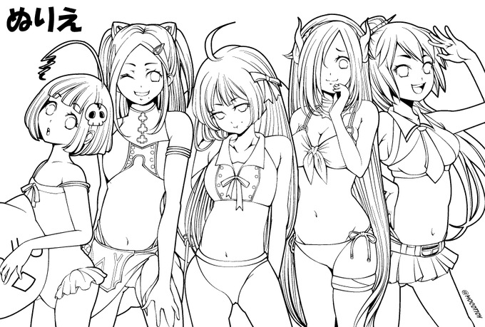 #皆さん線画と塗った後を見せてください ホラアカアートで線画があったわよ👙😌✨ #ホラアカ