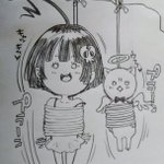 お仕事中のコーヒー休憩☕息抜きに描くメドちゃんとタージちゃん✍️✨ …癒された😌💕 #ホラアカアート