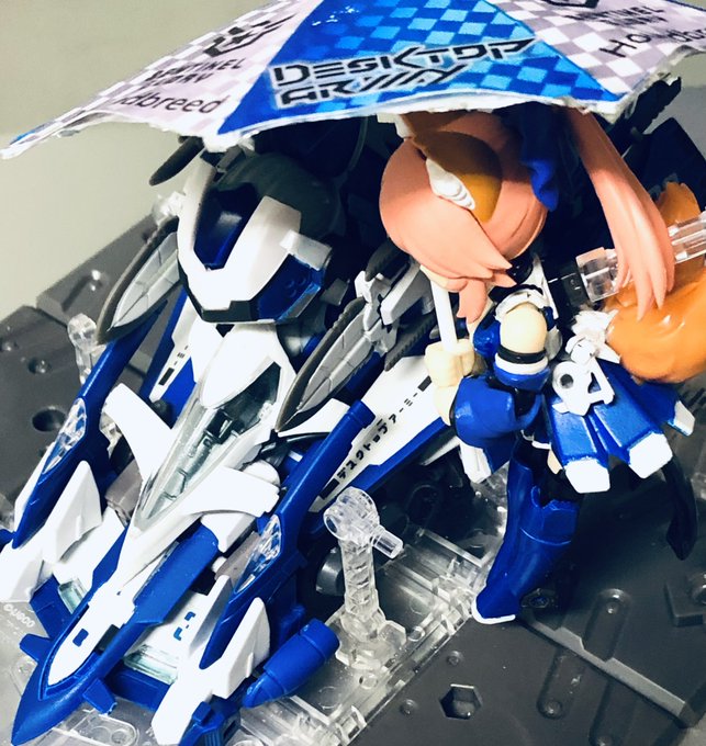 #デスクトップアーミー 防炎クロスで柄入りスカートを印刷してみた。もう少し布感が薄いと良いのだけれど... あと,洋傘の布ってどうやって貼ったらいいのだろうか,ビニ傘バラしてもよくわからない