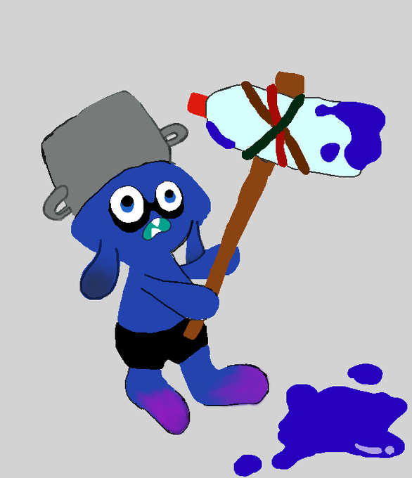 #スプラトゥーン #スプライラスト #イラスト 自作ローラーのおもちゃで遊ぶちびイカちゃん