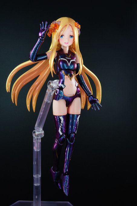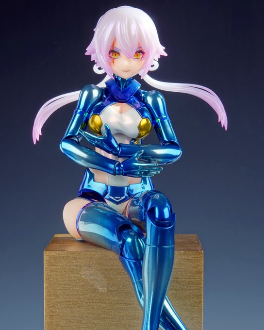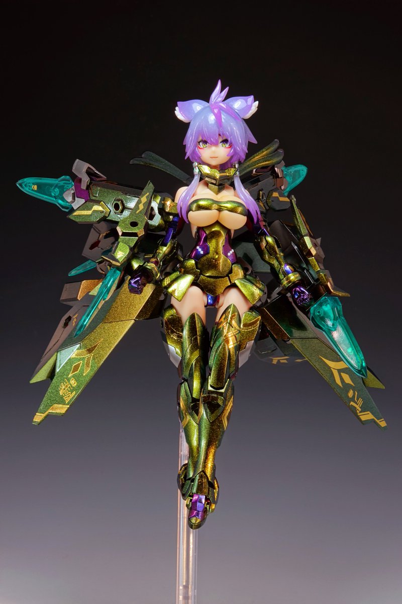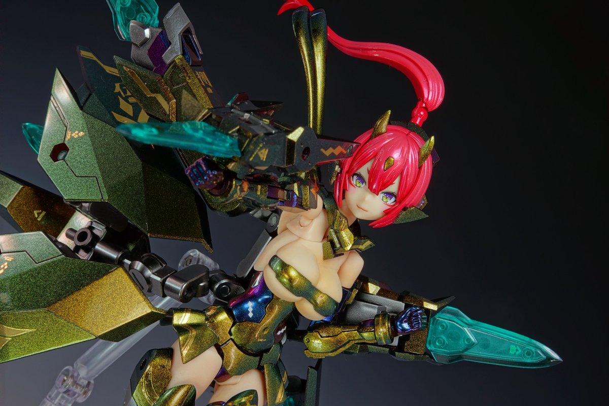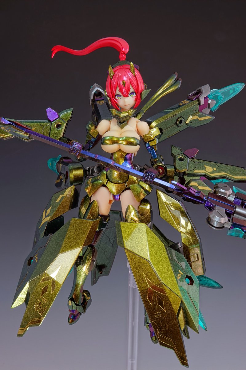 メガミデバイス オウブスサノヲ の素体モード。偏光塗料とウレタンクリアで仕上げてみた。 稼働範囲が広くて足が組めてありがたや。 #メガミデバイス #オウブスサノヲ