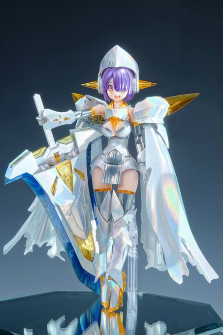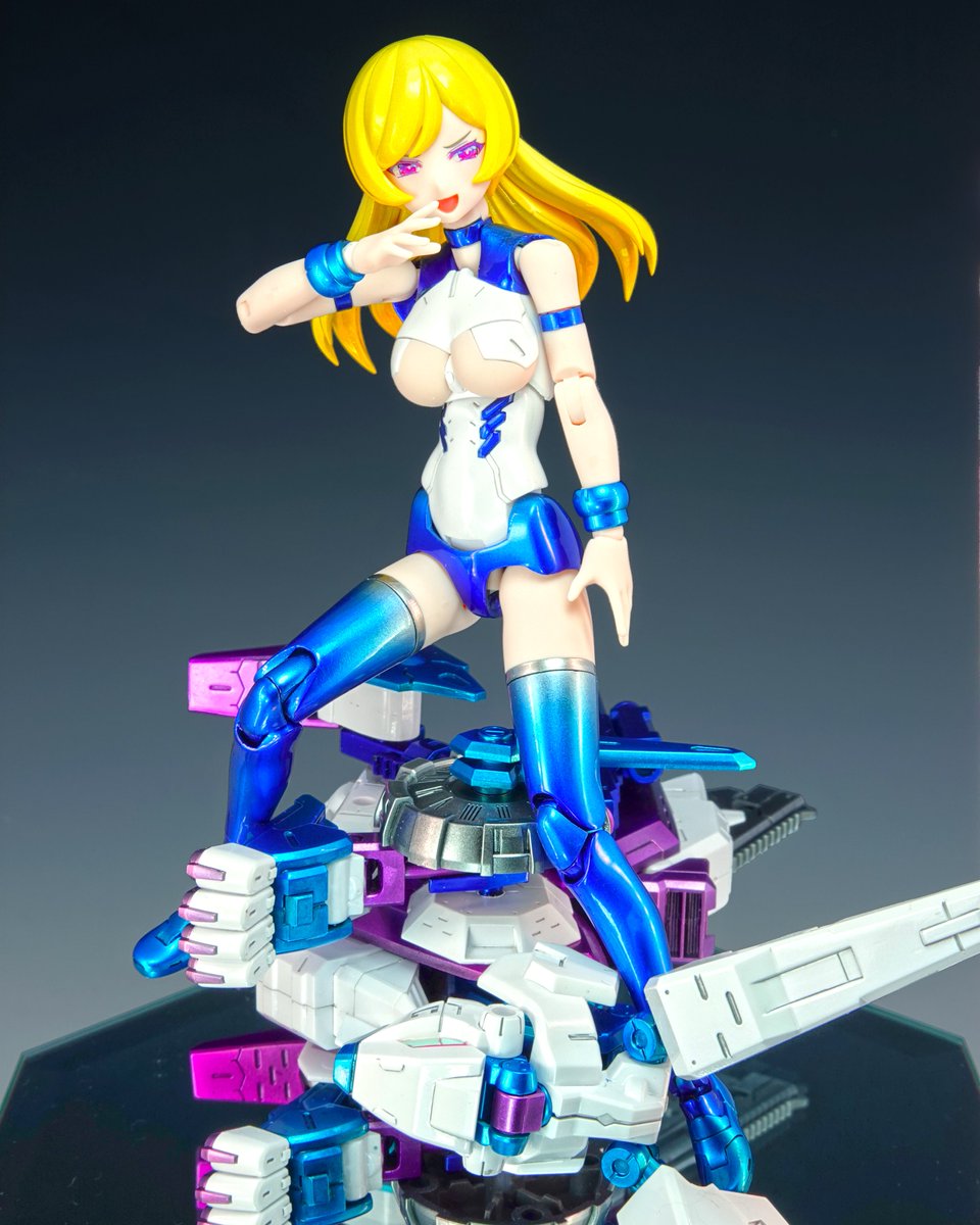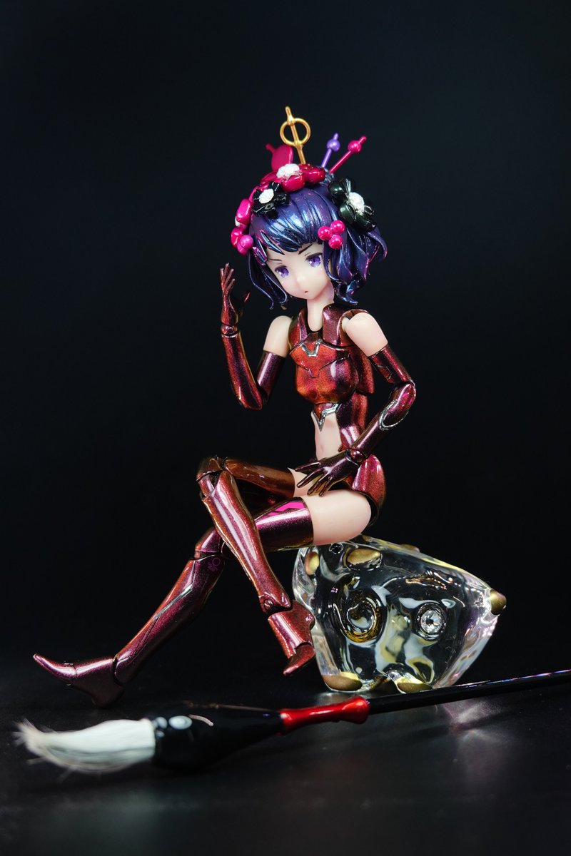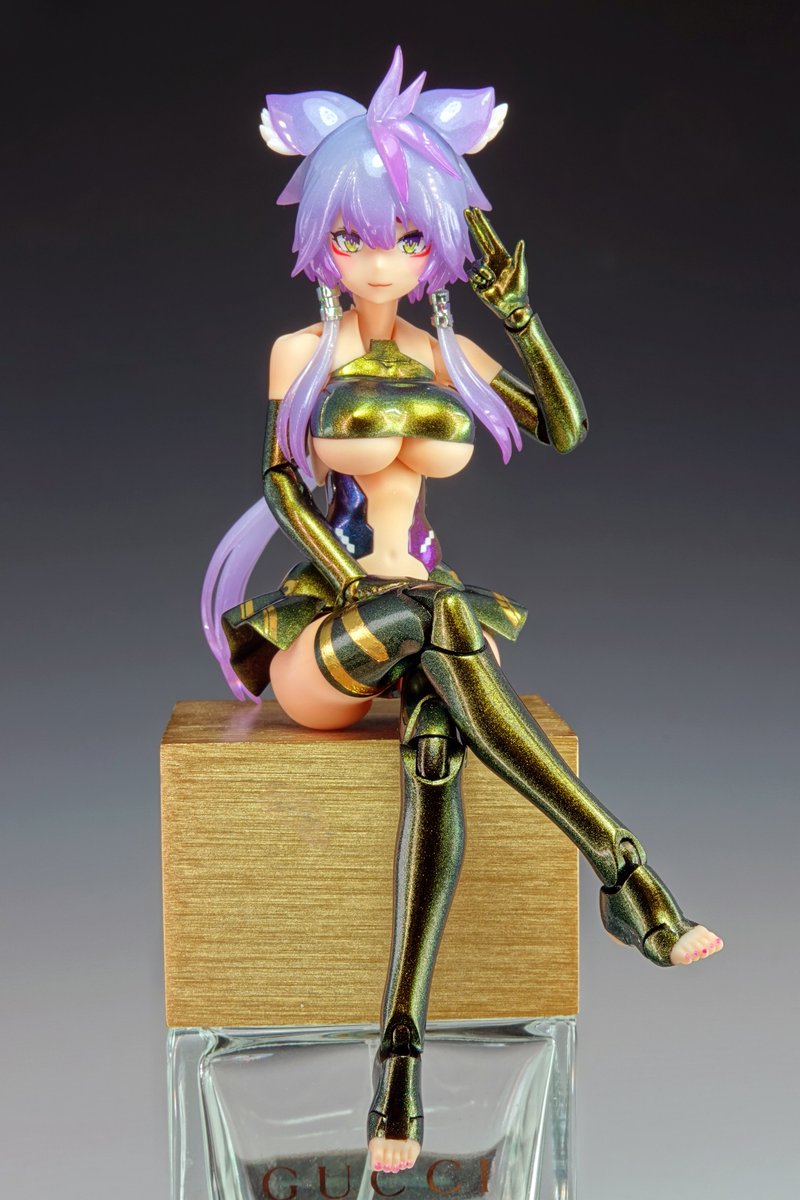 メガミデバイス オウブスサノヲ の素体モード。偏光塗料とウレタンクリアで仕上げてみた。 稼働範囲が広くて足が組めてありがたや。 #メガミデバイス #オウブスサノヲ