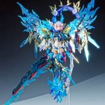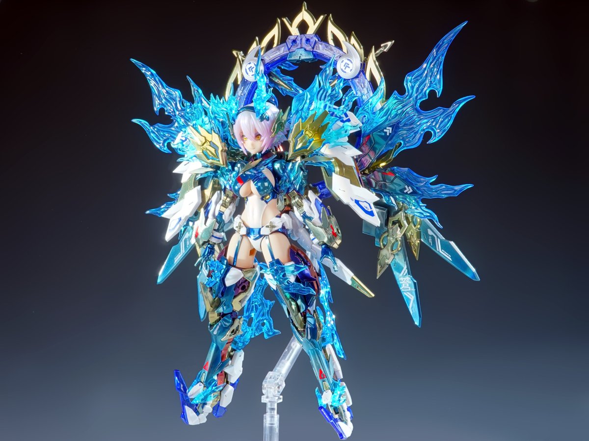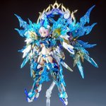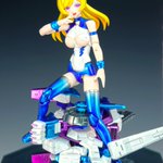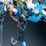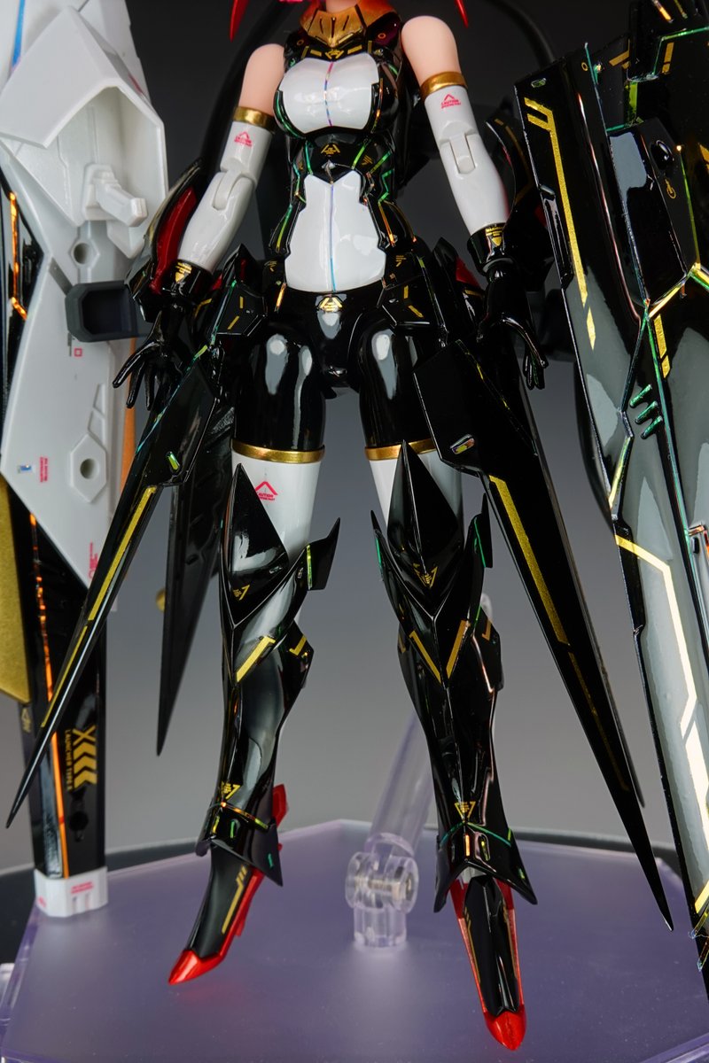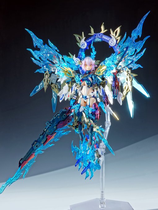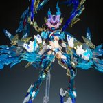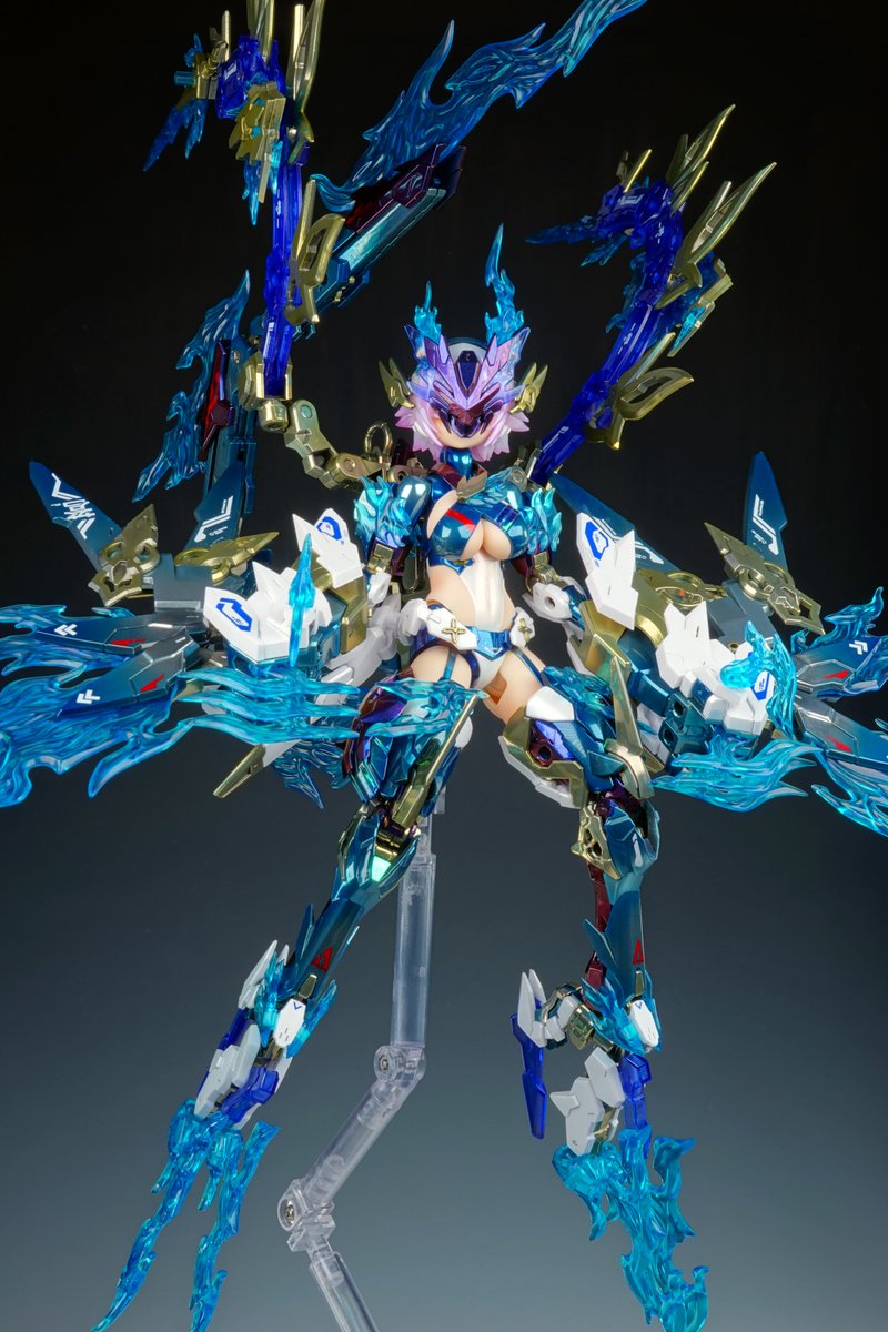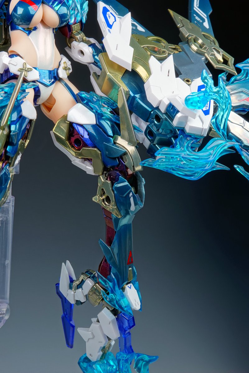 メガミデバイス 皇巫 スサノヲ 蒼炎 の武装モード。テラクローム+キャンディ塗装とマジョーラで仕上げてみた。平面部品のメッキ感を写真で表現するのが意外と難しい。 #メガミデバイス