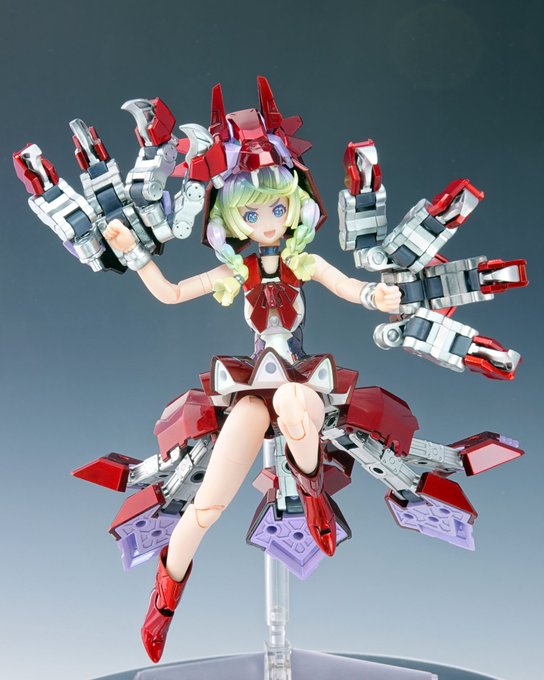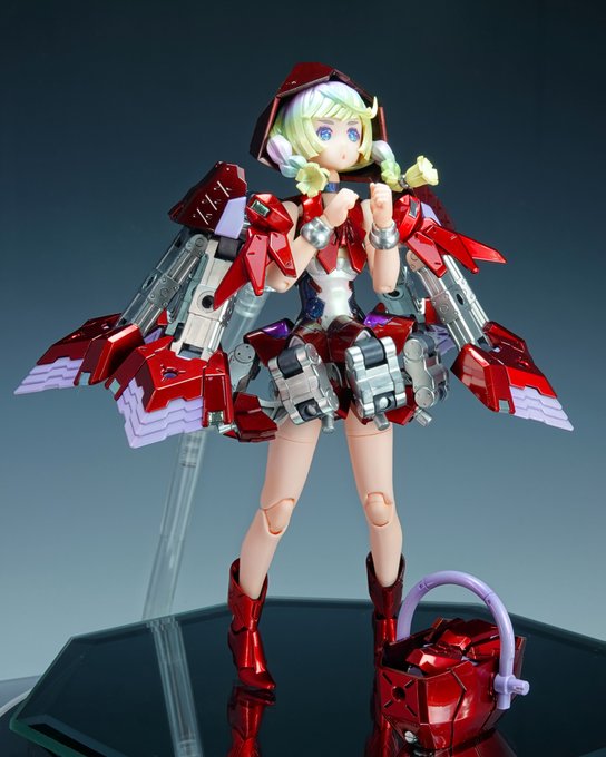 赤ずきんの武装モード。メッキ調塗料の上にキャンディ塗装をキメてみた。 #メガミデバイス