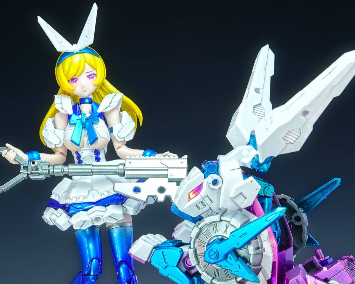 Chaos & Preety ALICE。本体と獣メカが合体する良キットだったような気がした。 メッキ調塗料+キャンディ塗装がマイブーム。DIVA KANDYの発色がとても良い。 #メガミデバイス