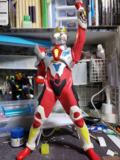 グリッドマン、なかなか作業時間がとれず… とりあえず電飾って感じで明日は持っていきます(涙)