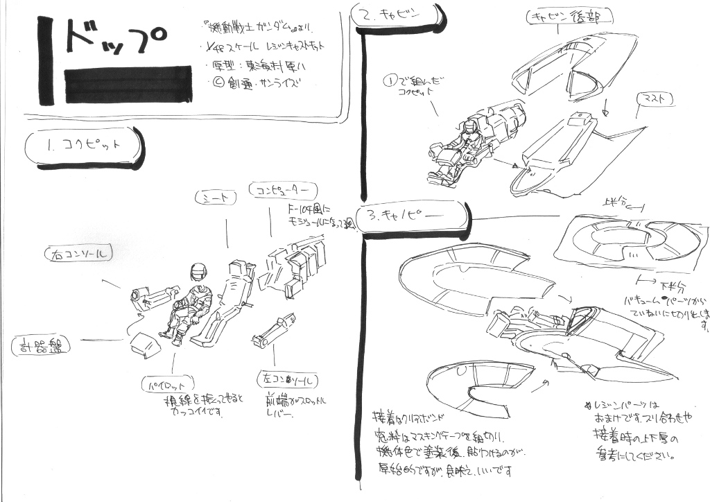 ドップ絵は翌年のイベントフォルダにありました。 模型の王国 1/48 レジンキット ジオン公国軍軽戦闘機 ドップ キャラホビ2010 おまけで当時の組み立て説明書も…… modelkingdom.net/wp/%e3%82%ad%e…