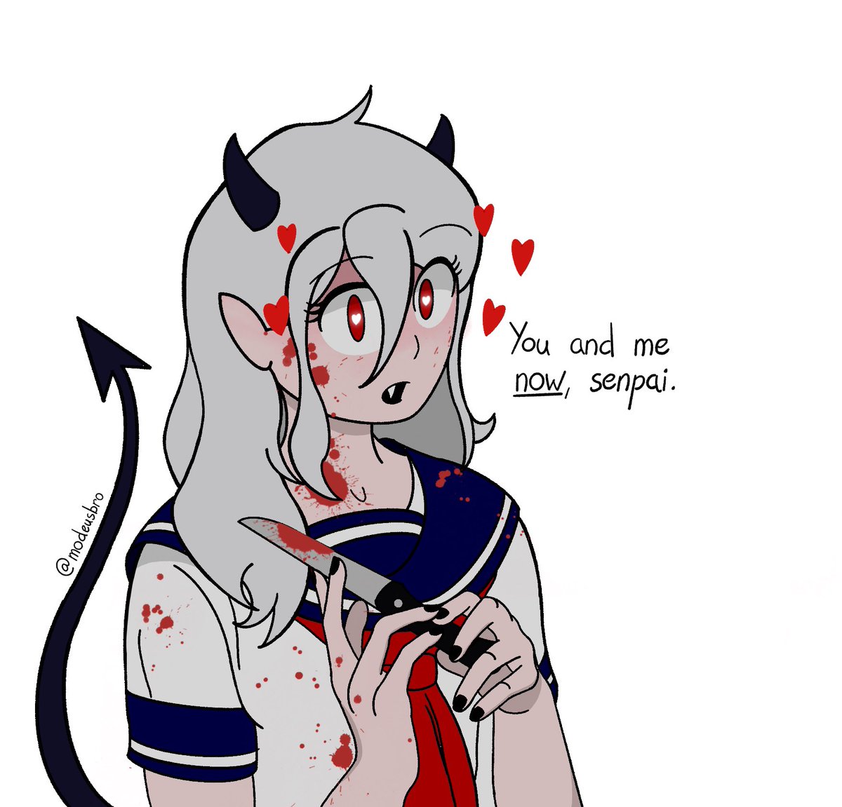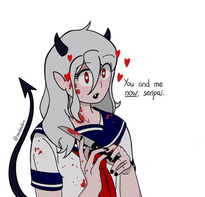 Sketch of best girl as a Yandere. Was meant to be ready for Halloween but I'm a piece of shit lmao #Helltaker #Helltakerfanart