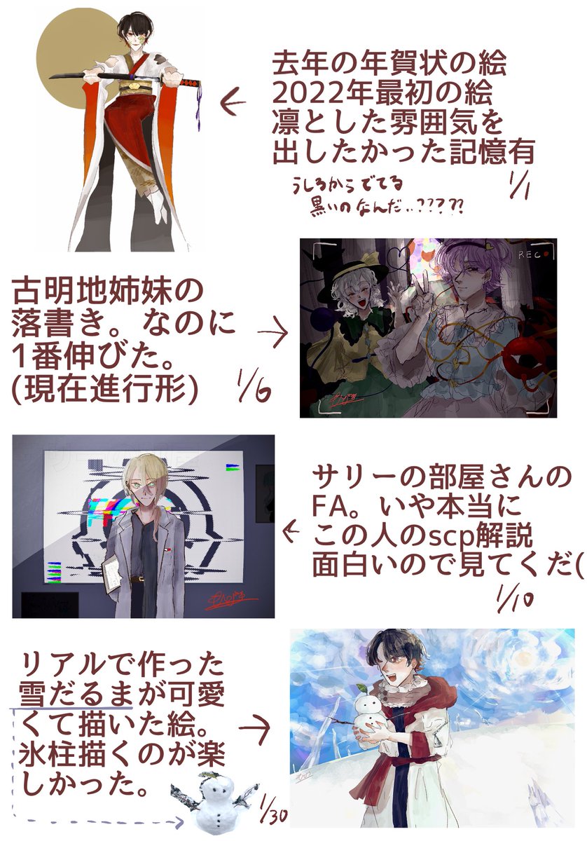 #今月描いた絵を晒そう #絵描きさんと繫がりたい 今月どころか今年の絵をまとめて振り返りました。 デジタルで描いてない期間が長かったね…… 投稿頻度上げるを目標に来年は頑張ります 来年も生き抜こう!!!!!