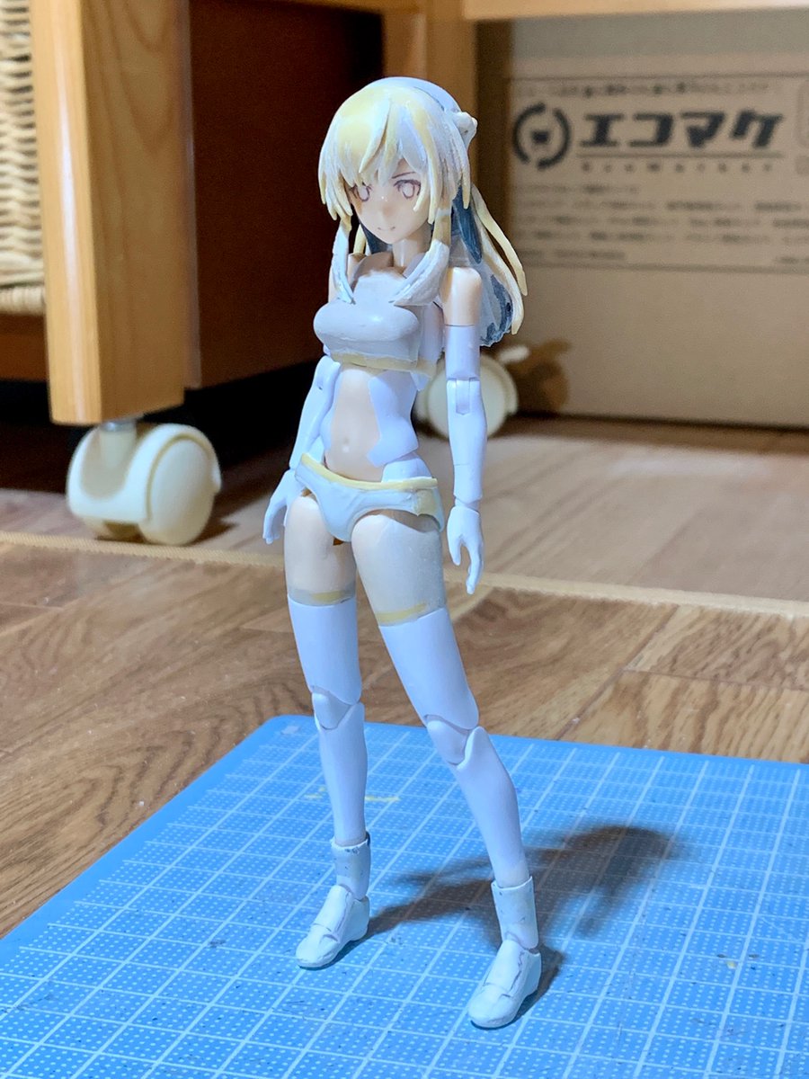 影虎さん完成。前つくった白虎と同じく髪型でイメチェン。白虎よりお姉さんなイメージがしたんでポニテにしてみました。キリッとしていながらも驚き顔が何か弱いところ見せていて可愛いですね。 #フレームアームズ・ガール