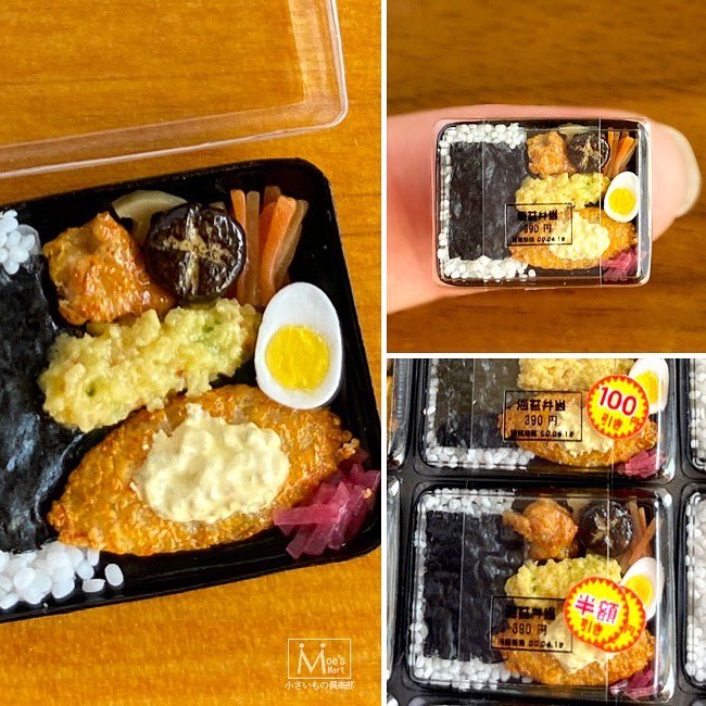 #RTで作家さんの世界を広げるタグ コンビニにありそうな商品をミニチュアサイズでリアルに見えるように粘土で作っています。 (お弁当は11月のミニチュアアート展2022オンラインで販売します)