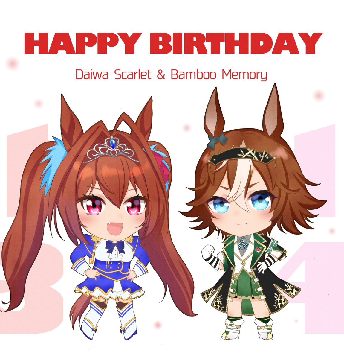 🌼一緒にお祝い🌼 ダスカちゃん バンブーメモリーちゃん(明日) お誕生日おめでとう!🎂✨ #ダイワスカーレット生誕祭2022 #バンブーメモリー生誕祭2022 #ウマ娘