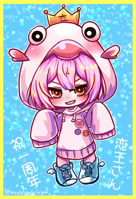 新衣装が可愛かったので描かせていただきました(*'ω'*) 恋王さん1周年おめでとうございます(*'▽') ダボっとした服は良い。可愛い。 #恋印
