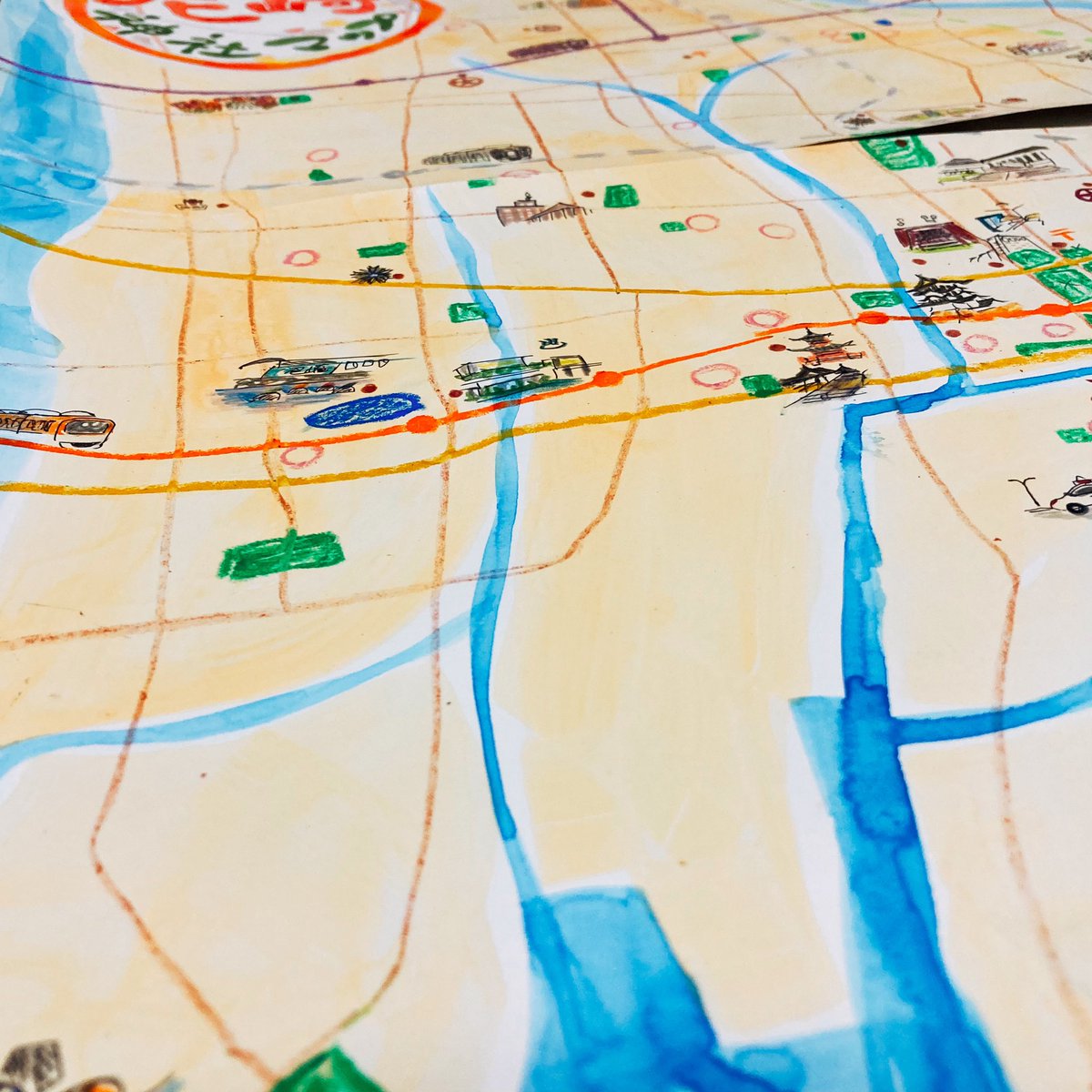 0 6 ちら見せ🕵🏽♀️🌟 … こちらは記念式典のために その土地の魅力を手描きにして 作成中🗺 … #地図 #map #水彩 #手描き #尼崎 21/05/27 08:17